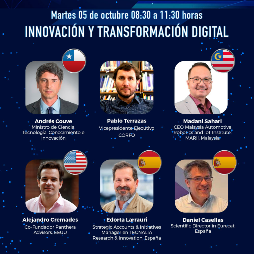 El ministro de Ciencia, Tecnología e Innovación, Andrés Couve, será el encargado de inaugurar la actividad este martes, en una jornada que además tendrá las exposiciones de Madani Sahari, CEO de Malaysia Automotive Robotics quien se referirá a la experiencia de Malasia en el desarrollo de IoT y Robótica; de Daniel Casellas, scientific director de EURECAT, quien expondrá sobre buenas prácticas y tendencias en materia de transferencia tecnológica.