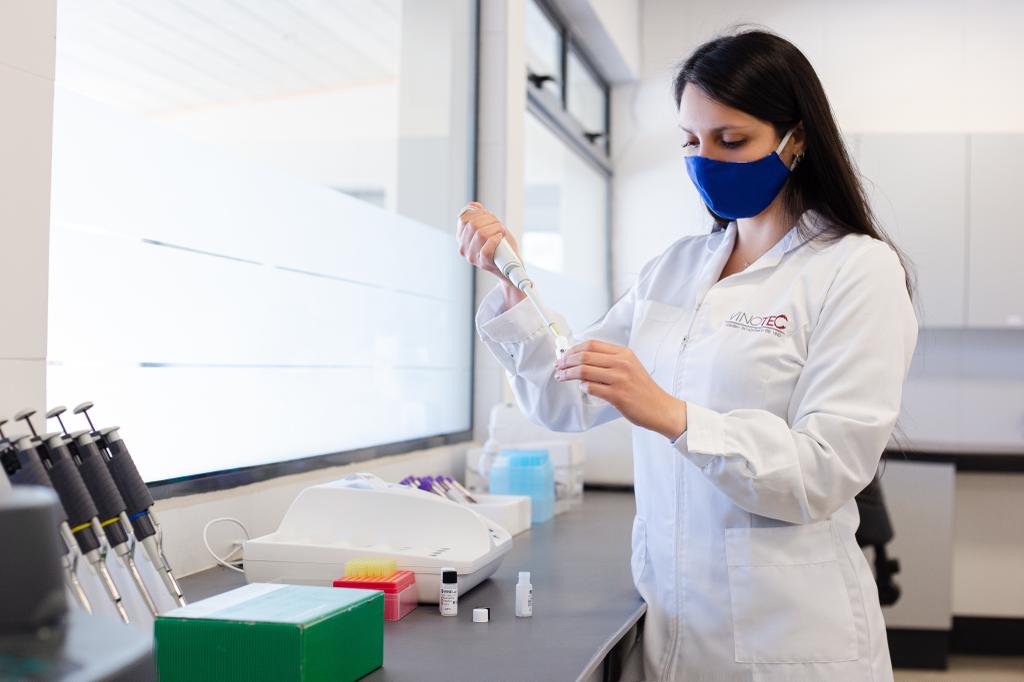 Su proyecto aprovecha el orujo que es un residuo vegetal que queda posterior al proceso de la vinificación. “Es la mezcla de piel y semillas que nosotros tomamos y en condiciones de laboratorio hacemos un extracto de los compuestos antioxidantes que quedan en el orujo antes de que sea descartado al campo. Este extracto concentrado de antioxidantes es lo que utilizamos como compuesto activo de la cosmética porque previene el envejecimiento de la piel”, explicó Cerda Moraga.